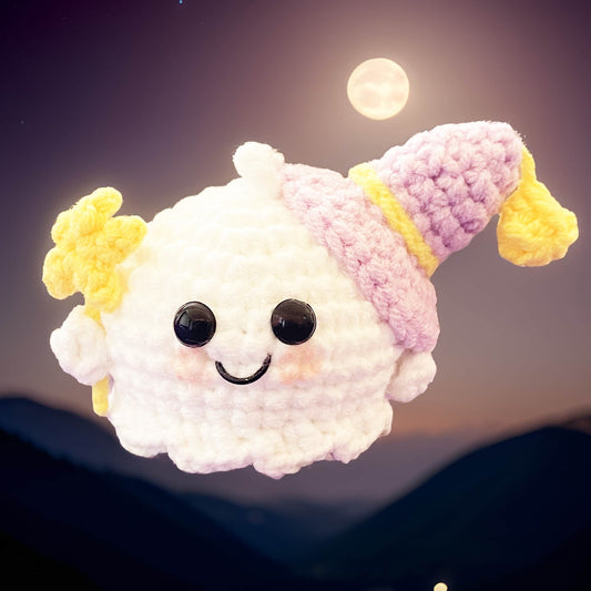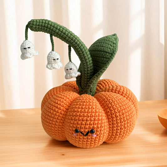 Handmade Crochet Ghost Pumpkin Plushie: Halloween Decor