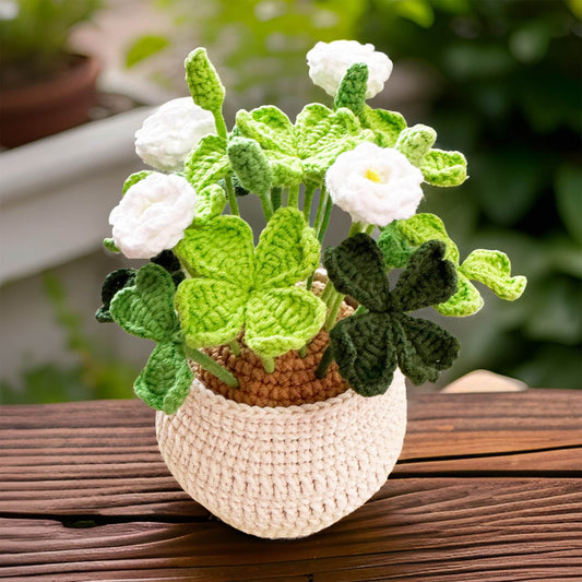 Handmade Crochet Clover Flower Pot Plant: St Patrick's Day Decor