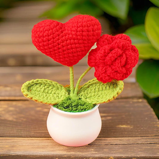 Handmade Crochet Heart Flower Pot: Valentine's Day Yarn Decor