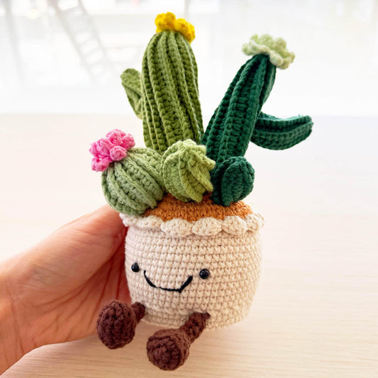 Handmade Crochet Cactus Smiley Pot: Yarn Flower Doll