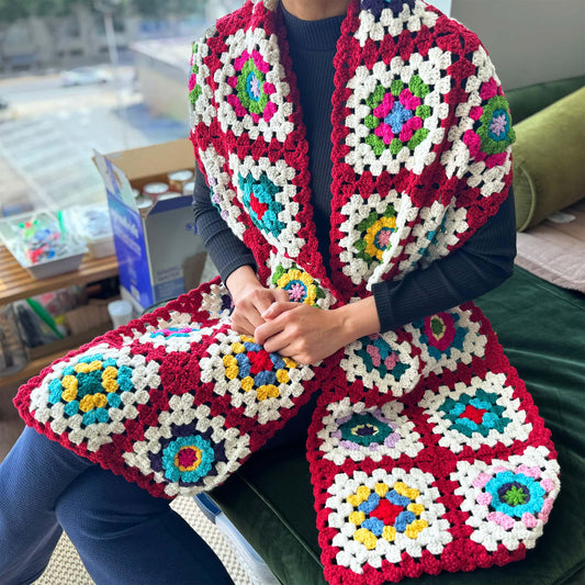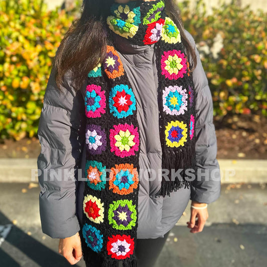 Handmade Crochet Granny Square Scarf: Colorful Winter Fashion