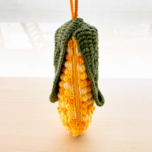Handmade Crochet Corn Pouch | Pencil Case | Cute Veggie Zipper Bag | Yarn Art Accessory | Corn Zipper Pouch | Back to School Gift