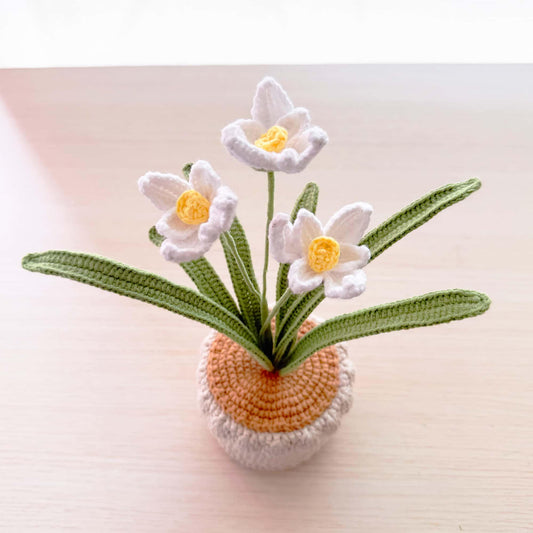 Handmade Crochet Daffodil Flower Pot: Cotton Floral Decor
