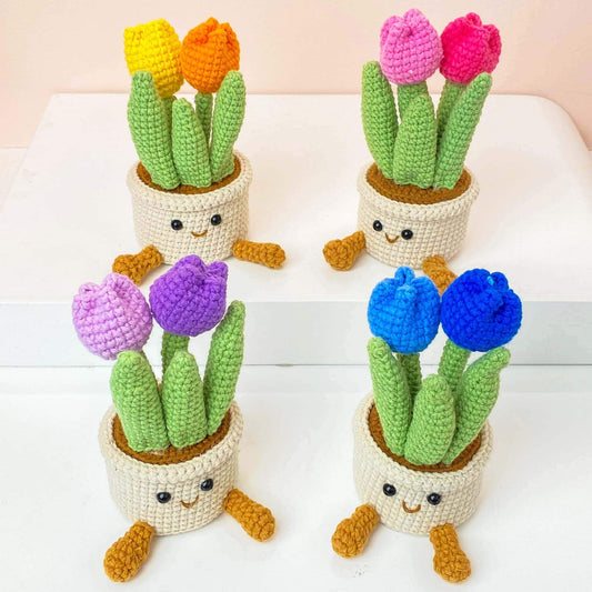 Handmade Crochet Cotton Tulip Flower Pot: Smiley Decor