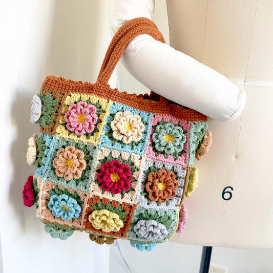 Handmade Crochet Granny Square Bag: Colorful Boho Yarn Tote
