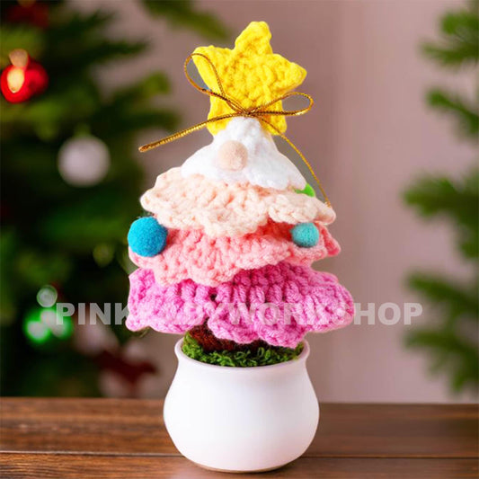 Handmade Crochet Christmas Tree: Pink & Green Holiday Decor