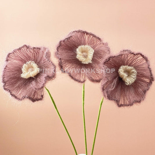 Handmade Crochet Iceland Poppy Bouquet (no vase): Fuzzy Yarn Pastel Decor
