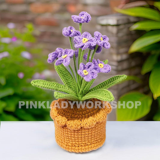 Handmade Crochet Forget-Me-Not Flower Pot: Pink, Blue, Purple