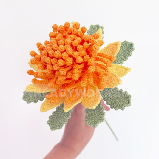 Handmade Crochet Chrysanthemum Stem (no vase): Fall Floral Decor, Yarn Flower
