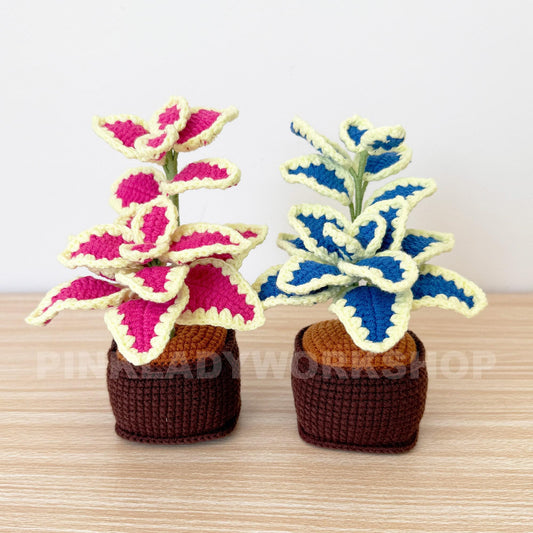 Handmade Crochet Coleus Plant Pot: Colorful Leaf Home Decor