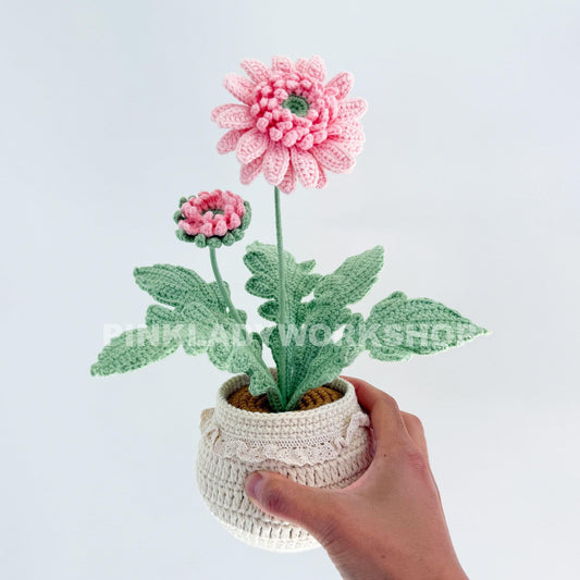 Handmade Crochet Daisy Pot: Gerbera Flower Arrangement