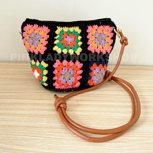 Handmade Crochet Granny Square Bag: Colorful Boho Crossbody Purse