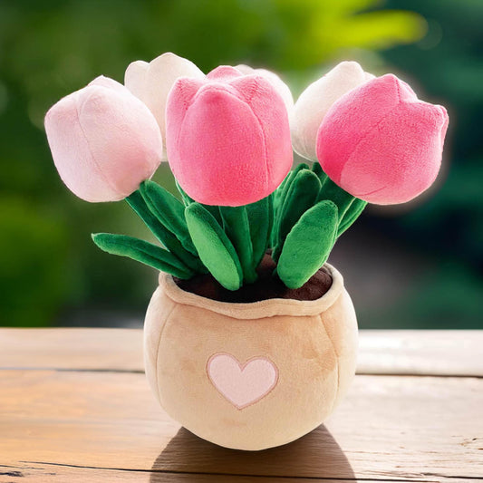 PinkLadyWorkshop Exclusive Pink Tulip | Daisy | Strawberry Pot Plush Toy: Stuffed Flower Bouquet