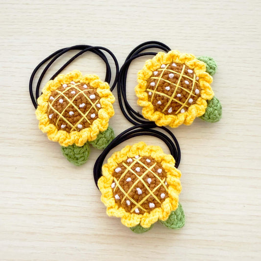 Set of 3 Pcs Crochet Hair Tie Set: Handmade Sunflower & Strawberry Elastics