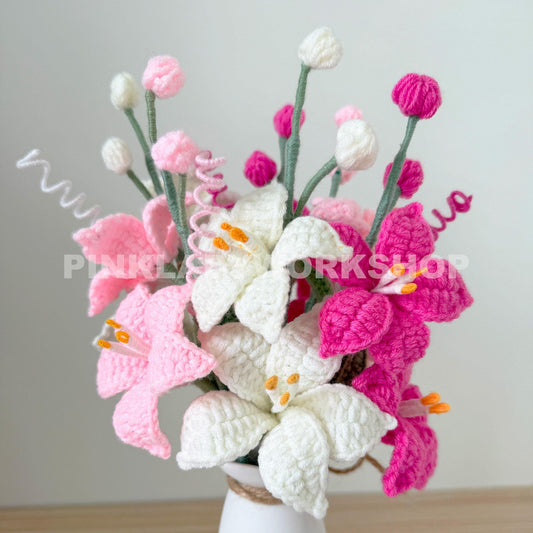 Set of 3 Crochet Coppertips Flower Bouquet (no vase): Handmade Soft Yarn Lily Arrangement