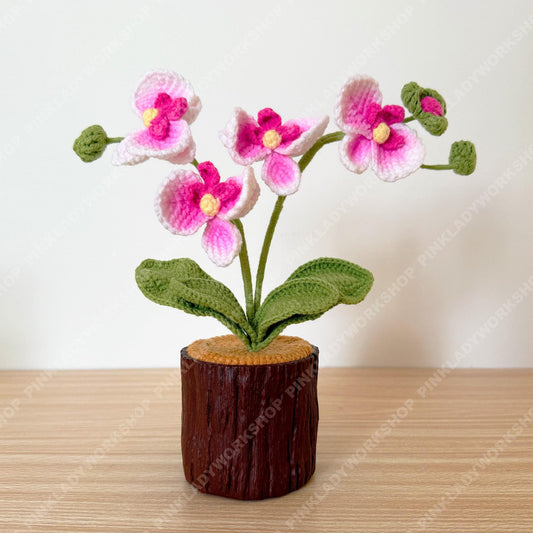 Pre-order Crochet Orchid Plant | Handmade Pink Orchid Flower with Plastic Pot | Amigurumi Potted Orchid Decor | Gift for Mom