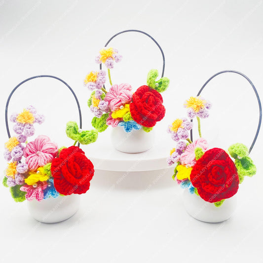 Pre-order Crochet Flower Basket | Handmade Floral Arrangement | Mini Crochet Bouquet Pot | Colorful Desk Decor | Gift for Her