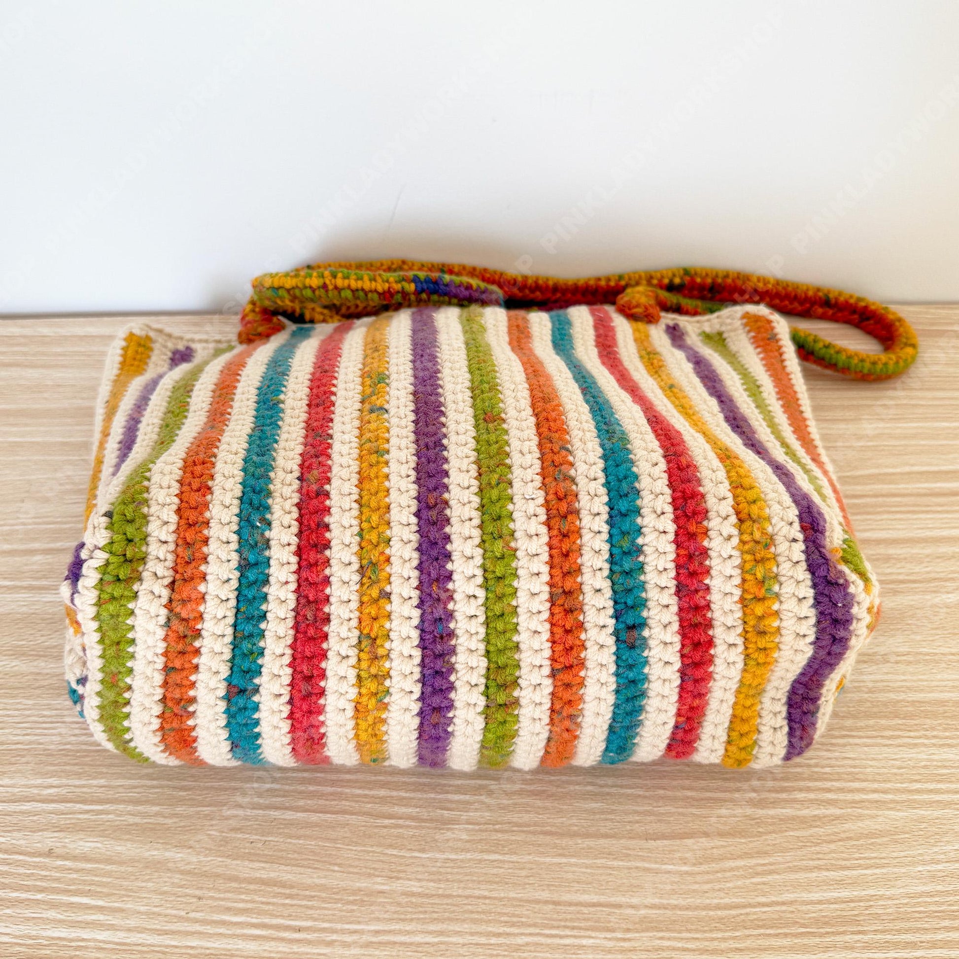 Crochet Rainbow Striped Tote Bag | Handmade Boho Shoulder Bag