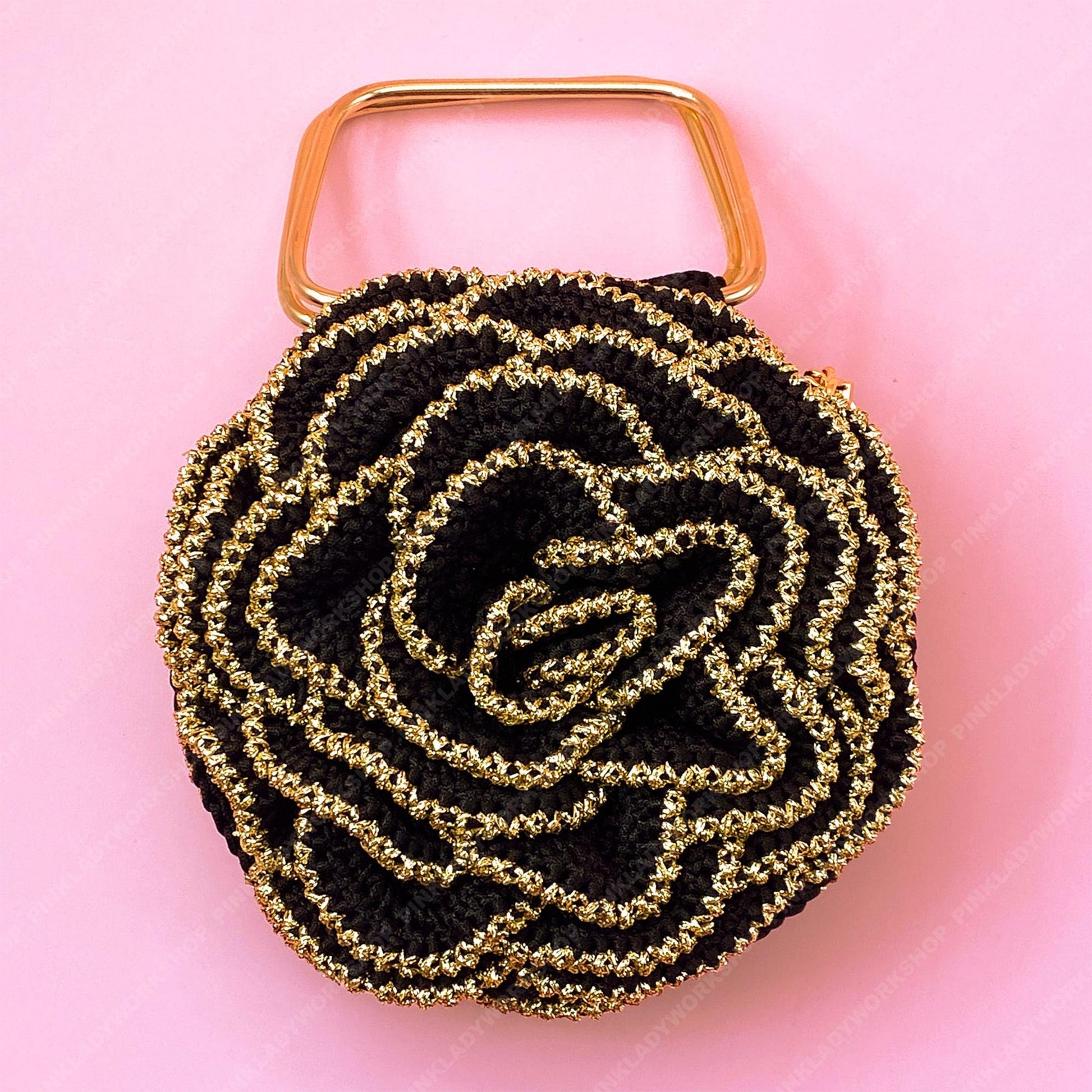 Turn every outing into a special occasion with this Handmade Black & Gold Crochet Rose Evening Bag.