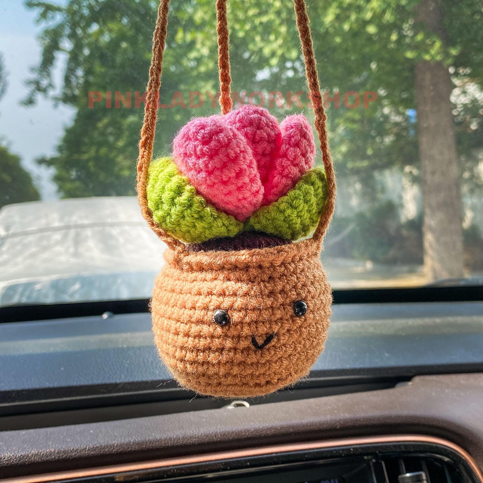This crochet succulent is the perfect multi-use charm! Whether you hang it from your bag, car mirror, or use it as a Christmas ornament, it brings a cozy, cheerful vibe anywhere. Featuring a soft amigurumi flower pot with a sweet smile, pink petals, and green leaves, it's a delightful gift for plant lovers, crochet fans, or Jellycat collectors. Handmade with love, this plush charm adds personality to any purse, dashboard, or holiday tree.