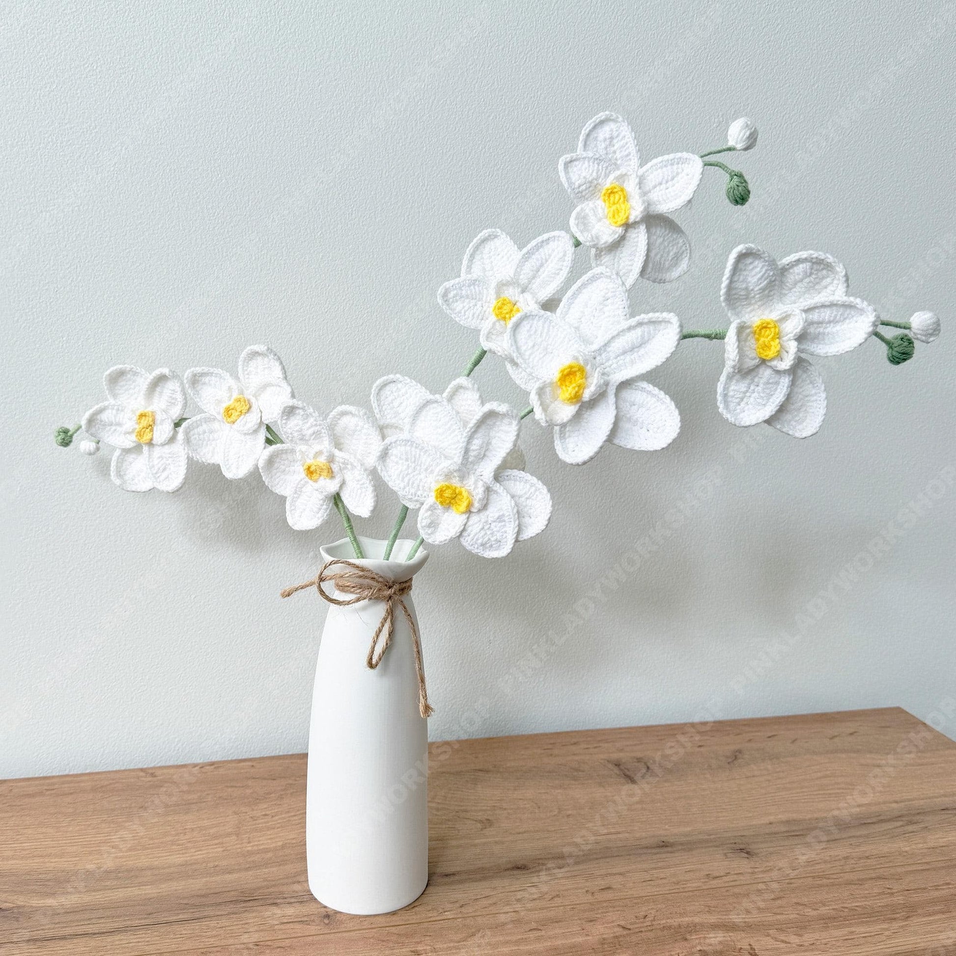 Crochet White Orchid Bouquet (no vase) | Handmade Crochet Flower Stem