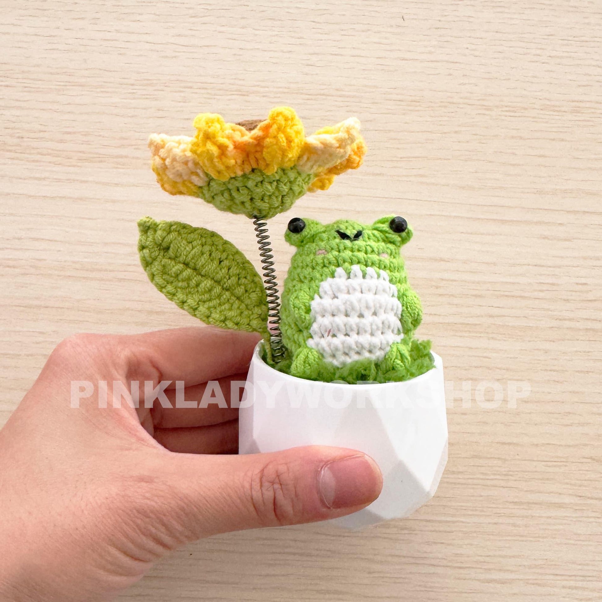 Crochet Frog and Bee Amigurumi: Sunflower Umbrella, Whimsical Decor