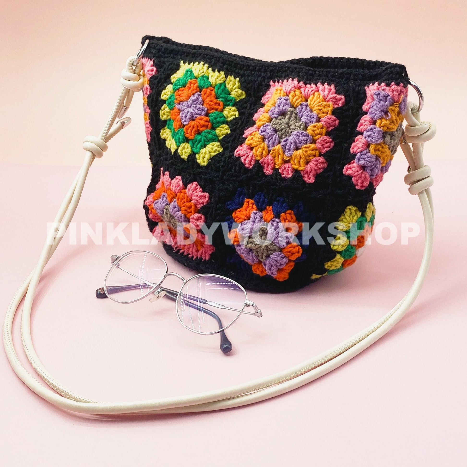 Each bag is carefully crafted with vibrant crochet granny squares on a classic black background, creating a bold, colorful, and eye-catching design. Lightweight and versatile, this bag is perfect for festivals, casual outings, shopping trips, or as a unique statement accessory for everyday wear.