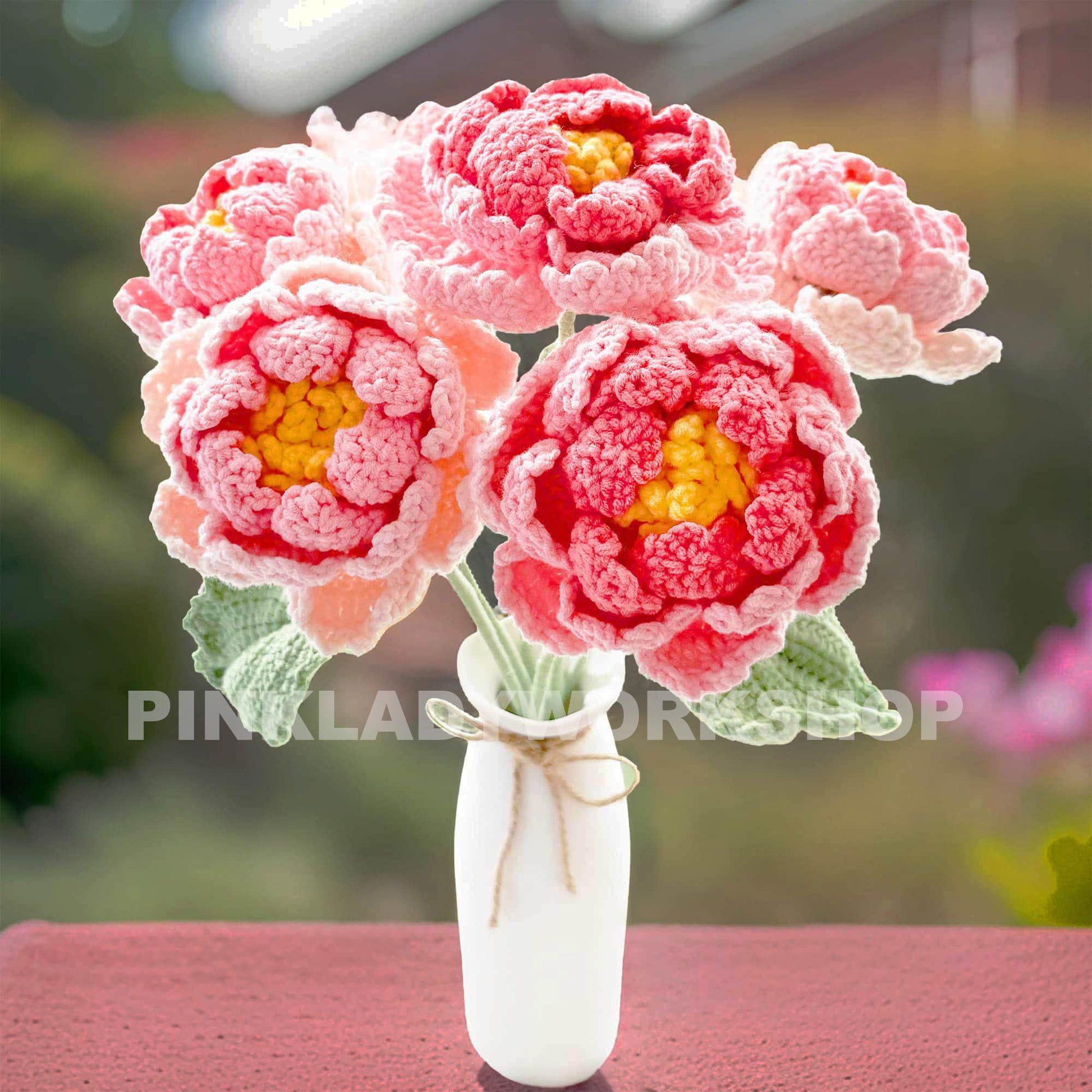 Handmade Crochet Peony Flower Stems (no vase) | Pink | Bouquet | Gift for Mom Girlfriend Teacher | Artificial Plant | Flowers Arrangement