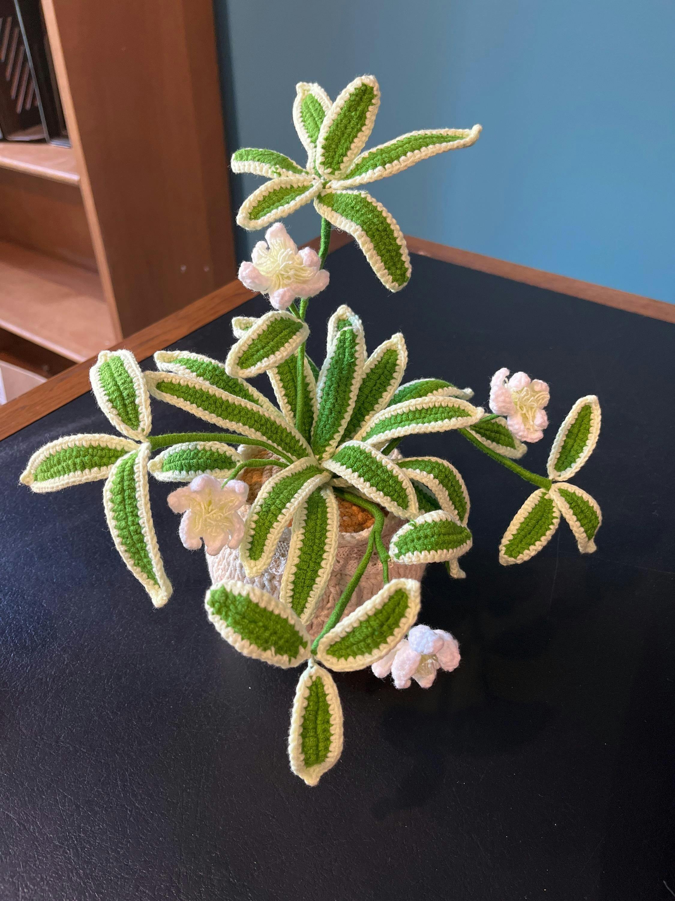 Bring the charm of nature indoors-without any upkeep! This handmade crochet spider plant features bright green striped leaves and delicate white flower buds, capturing the look of the real thing in cozy fiber art form. Perfect for plant lovers, dorm rooms, office desks, or housewarming gifts, it adds a pop of green to any space with zero maintenance. Each plant is carefully crocheted by hand and placed in a soft white pot for a timeless, minimalist look.
