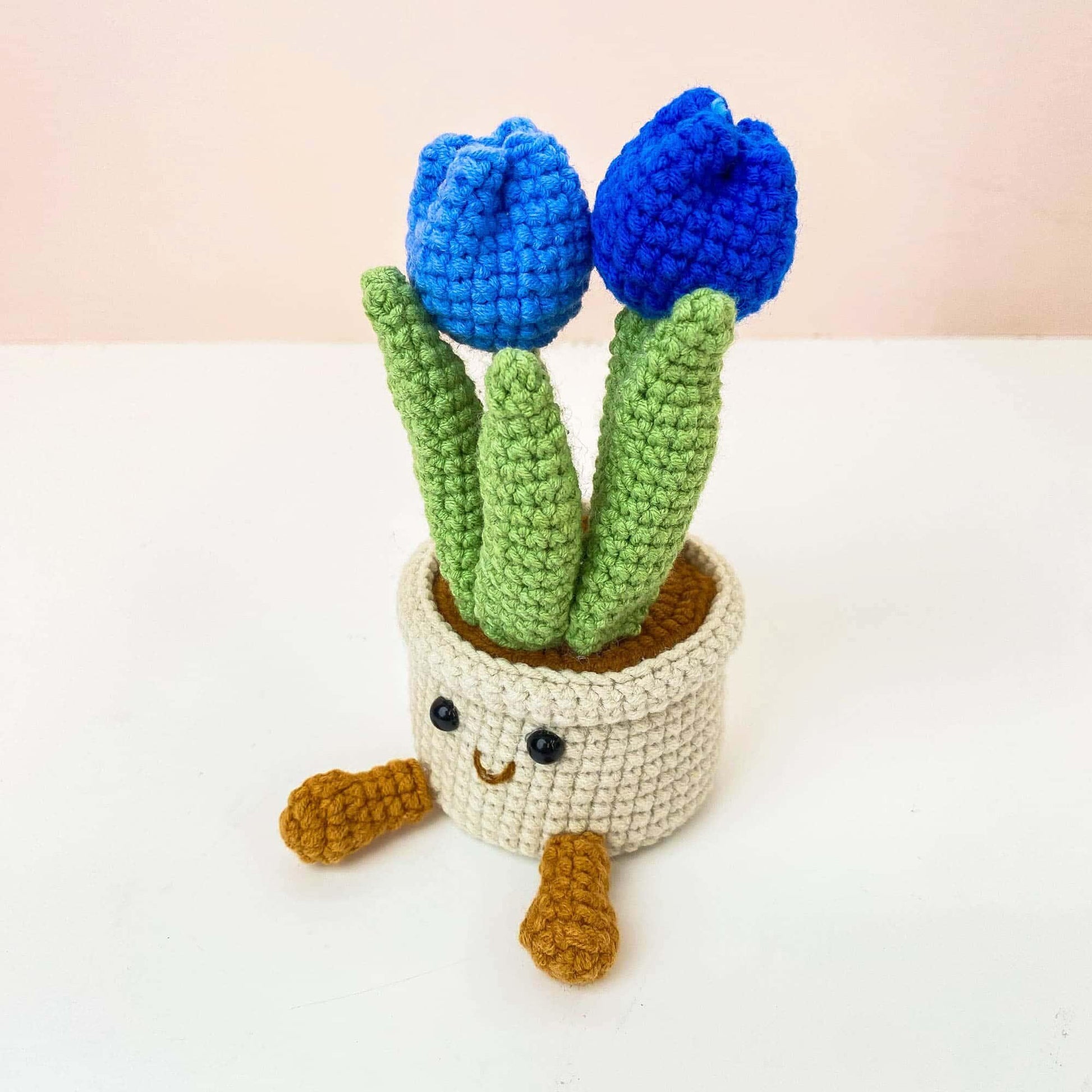 Handmade Crochet Cotton Tulip Flower Pot: Smiley Decor