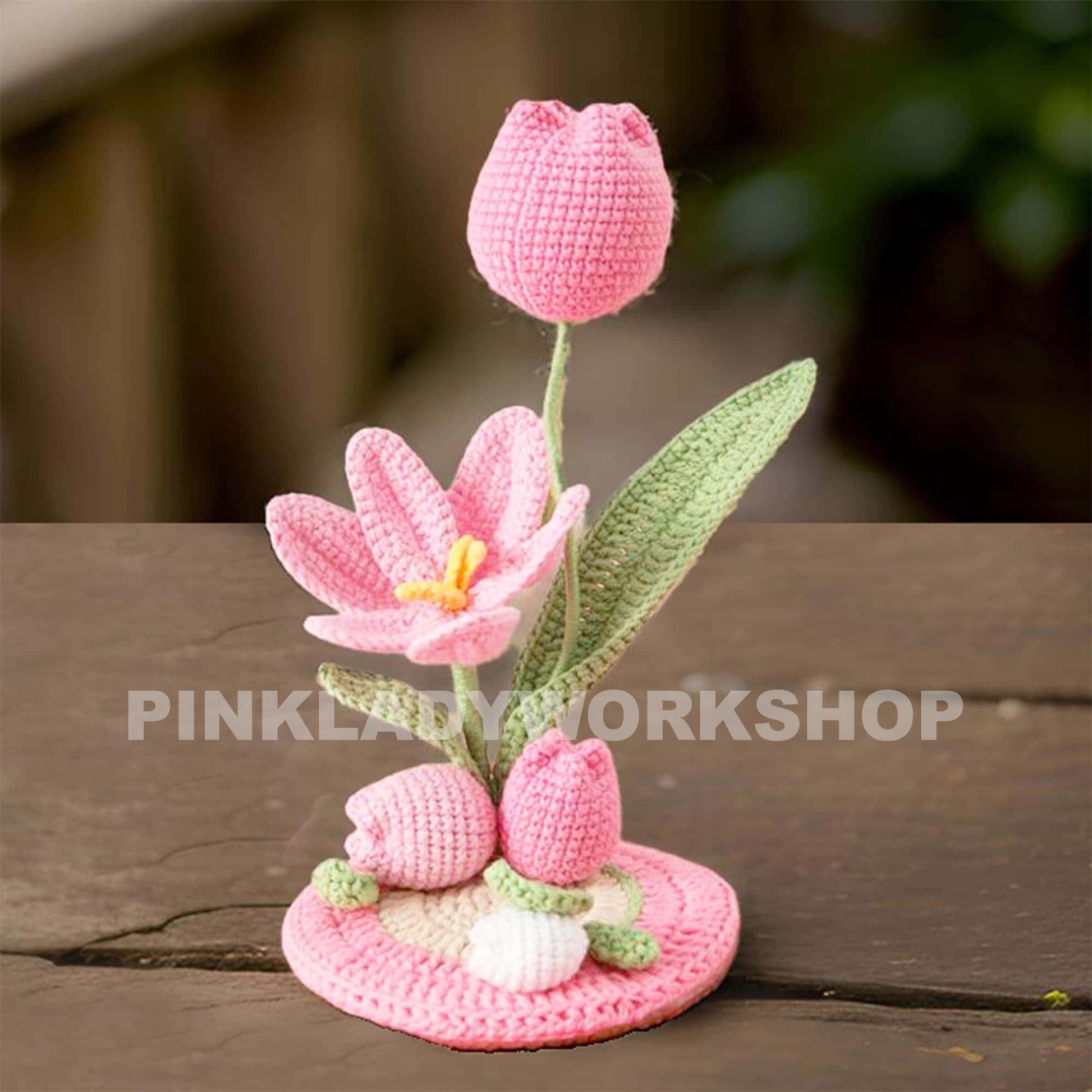Handmade Crochet Tulip Phone Holder: Pink Desk Decor
