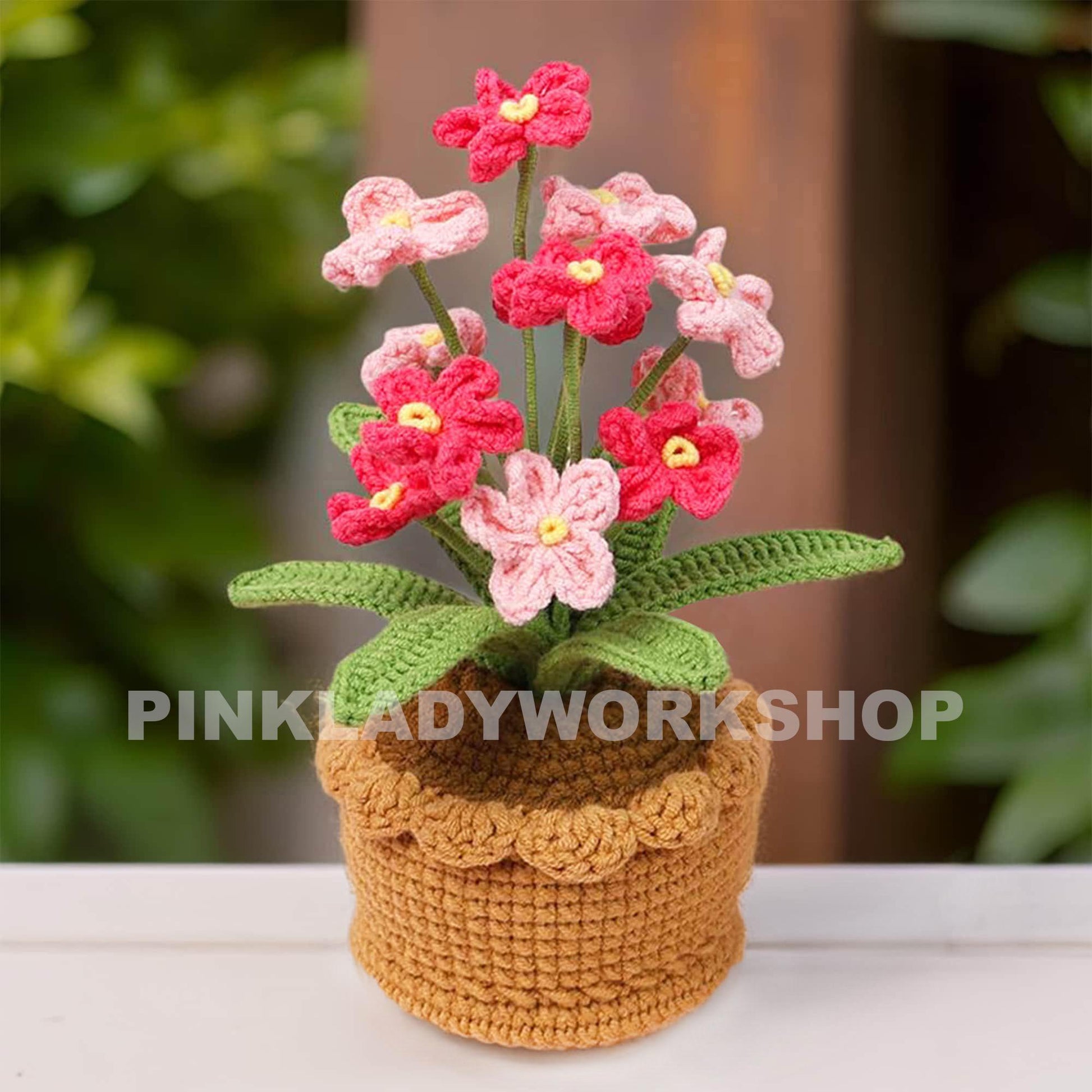 Handmade Crochet Forget-Me-Not Flower Pot: Pink, Blue, Purple
