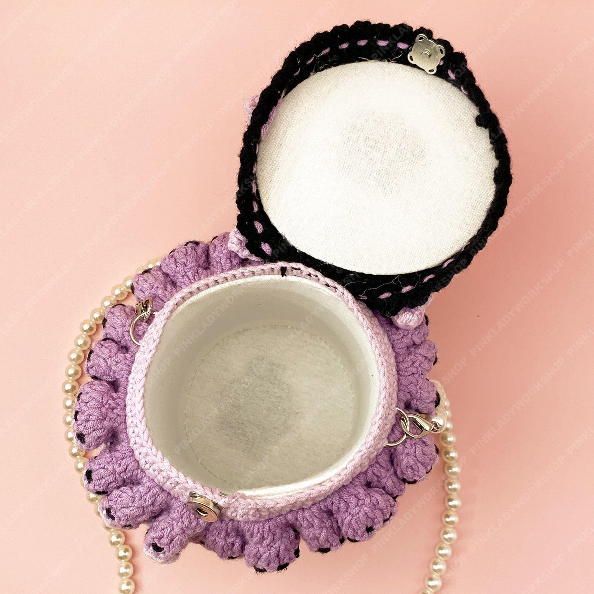 Pre-order Kawaii Anime Bunny Bag | Japanese Anime Crochet Bottle Purse | Gothic Lolita Crossbody | Purple Black Pearl Strap Handmade Gift